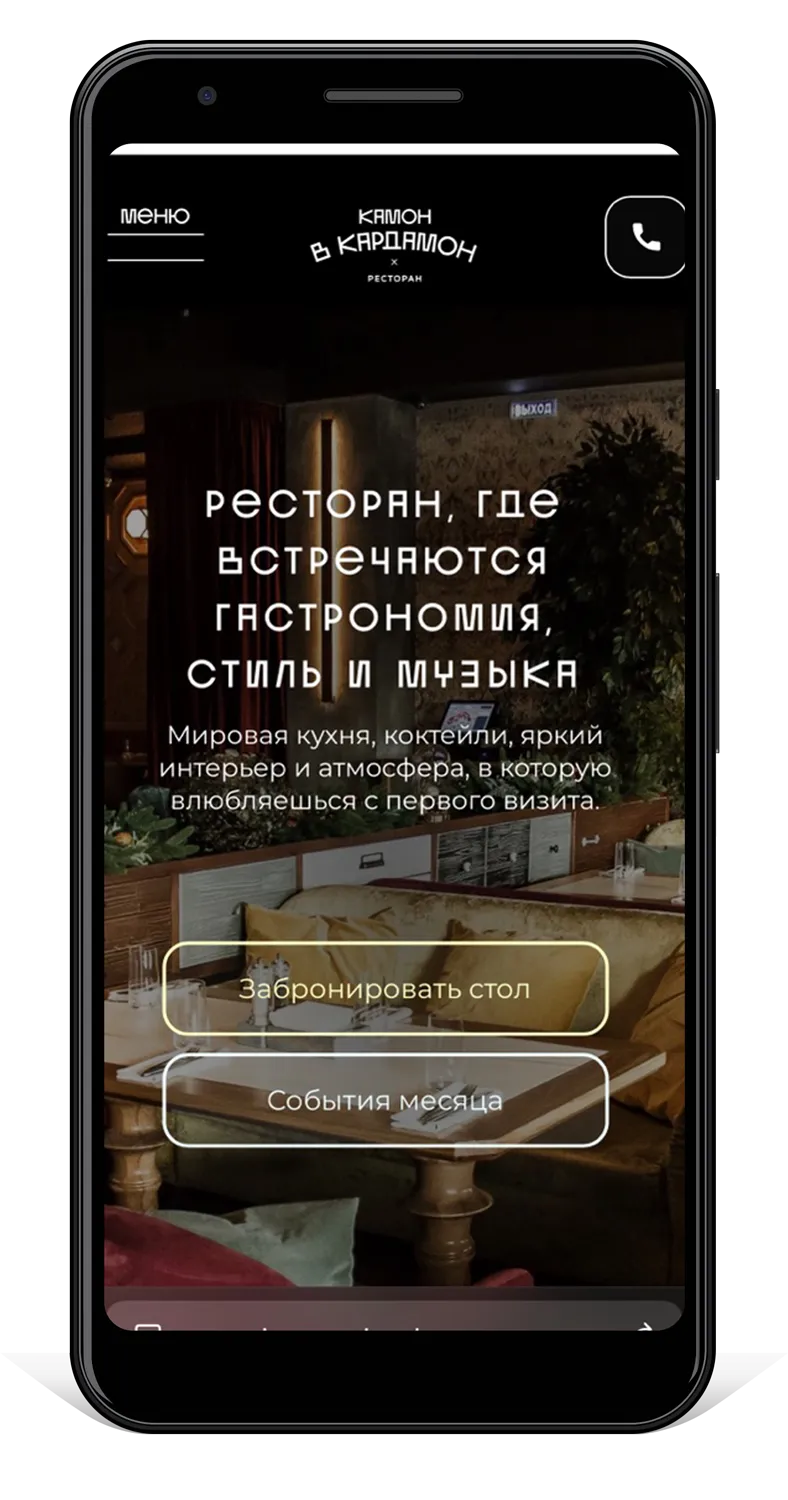 Ресторан «Камон Кардамон» обратился к нам с задачей полной переработки старого сайта. Новый сайт должен был не просто представить ресторан, но стать отражением его философии, атмосферы и стиля жизни его гостей.